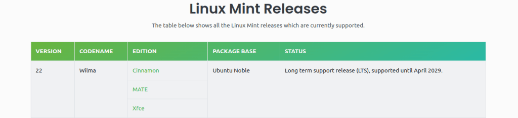 အခုအသစ်ထွက်ရှိလာတဲ့ Linux mint 22 ဟာ security update ကို 2029 အထိ Long term support ရသွားမှာဖြစ်ပြီး update အားလုံးကိုတော့ 2026 အထိရရှိမှာဖြစ်ပါတယ်။