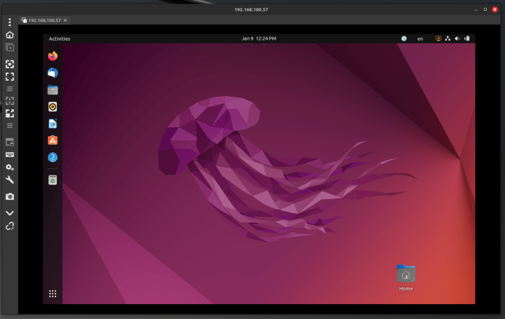Remmina Application ကို ဖွင့်လိုက်တာနဲ့ Remote server ဖြစ်တဲ့ Ubuntu computer ရဲ့ Ip ကို ဖော်ပြပါ ပုံအတိုင်း ထည့်ပြီး Enter ခေါက်ခါ ချိတ်ဆက် အသုံးပြုနိုင်ပါပြီ။