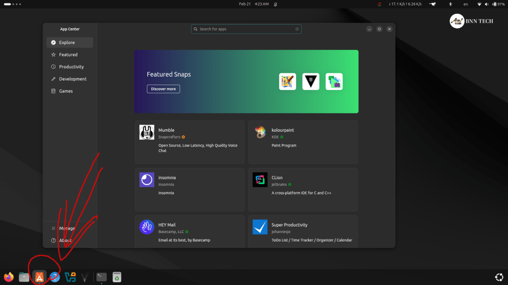 အရင်ဆုံး Ubuntu ရဲ့ Software store application ကို သွားပါ။