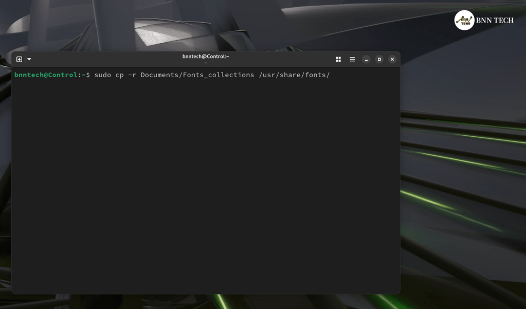sudo cp -r Documents/Fonts_collections /usr/share/fonts/